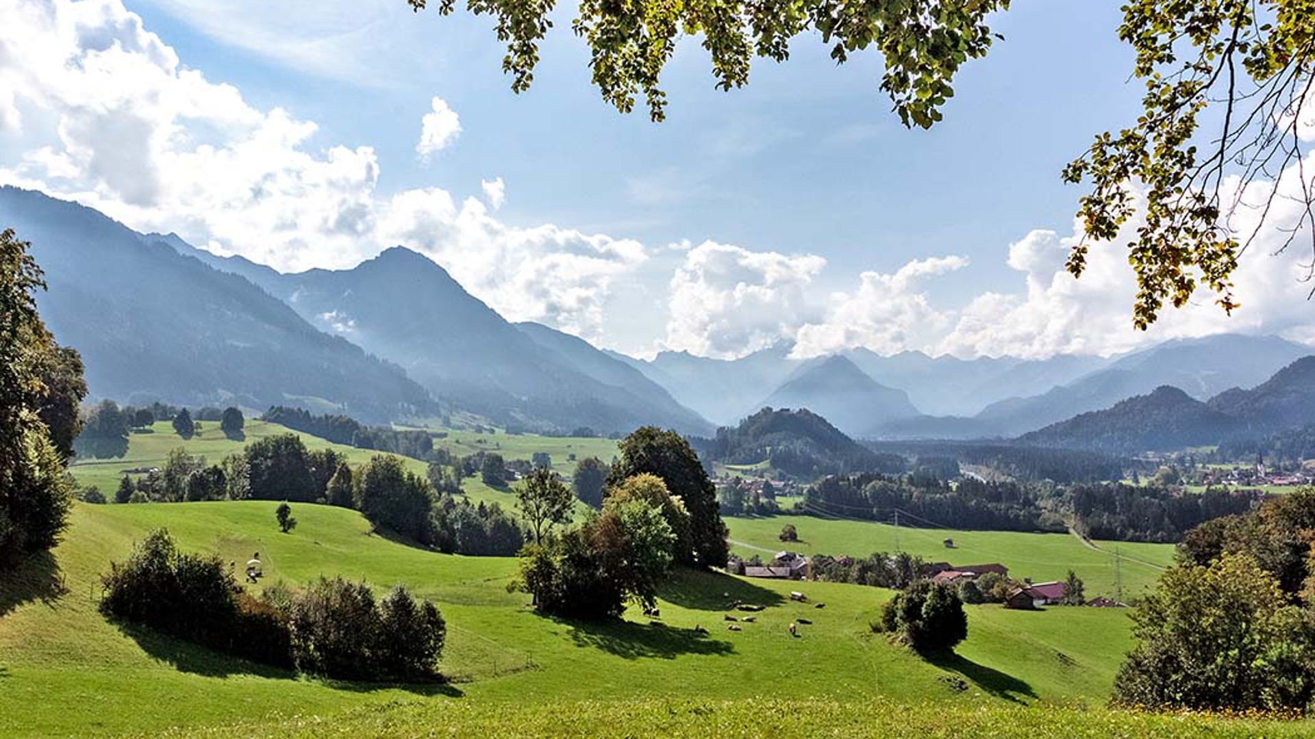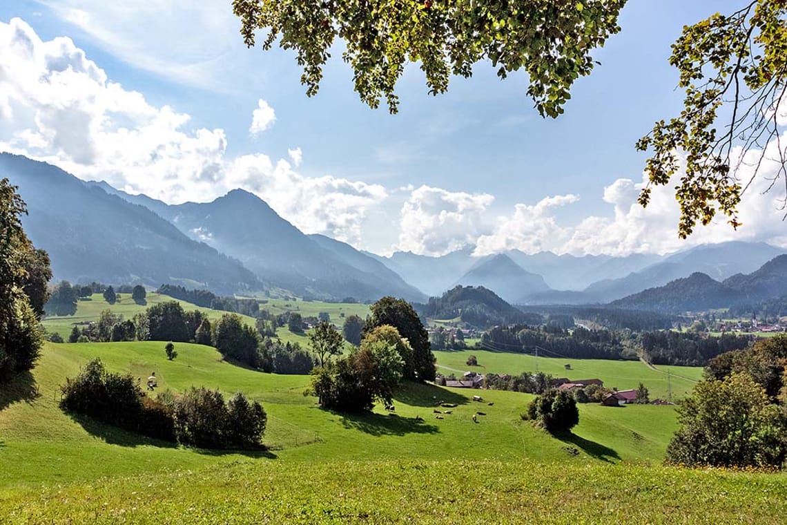 Hier eine wundervolle saftige, grüne Landschaft, toller Bergblick